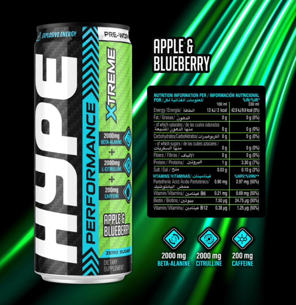 إليك HYPE PERFORMANCE XTREME – مشروب طاقة فريد مصمم خصيصًا للرياضيين واللاعبين الذين لا يرضون بأقل من الأداء القوي والمتفجر.
